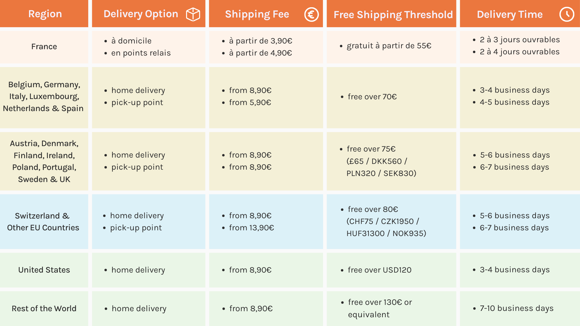 *Note: Customs duties, taxes, and import fees apply outside the EU and are the responsibility of the customer. Delivery times may vary slightly due to carrier schedules, customs (for international orders), or public holidays.